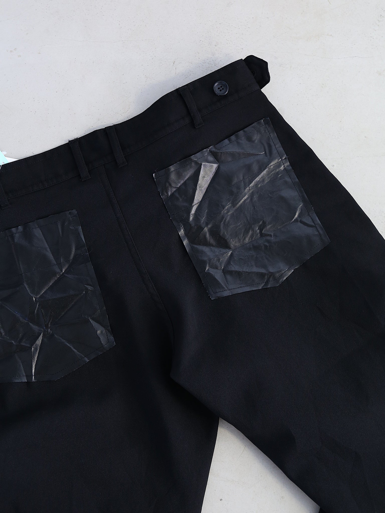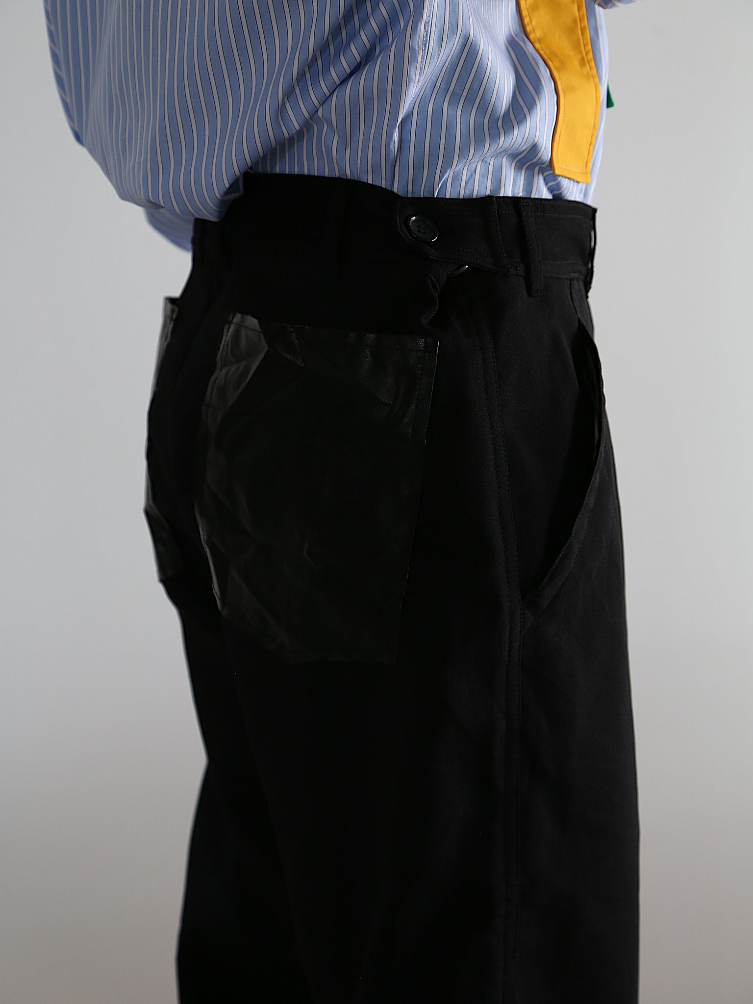 ポリエステル素材を使用したパンツ。ゆとりのあるテーパードシルエット、ウエストにサイズ調整可能なボタンアジャスターを配備。コート同様にバックポケットにはEVA素材が使用され、バックスタイルにも気が利いたアイテム。