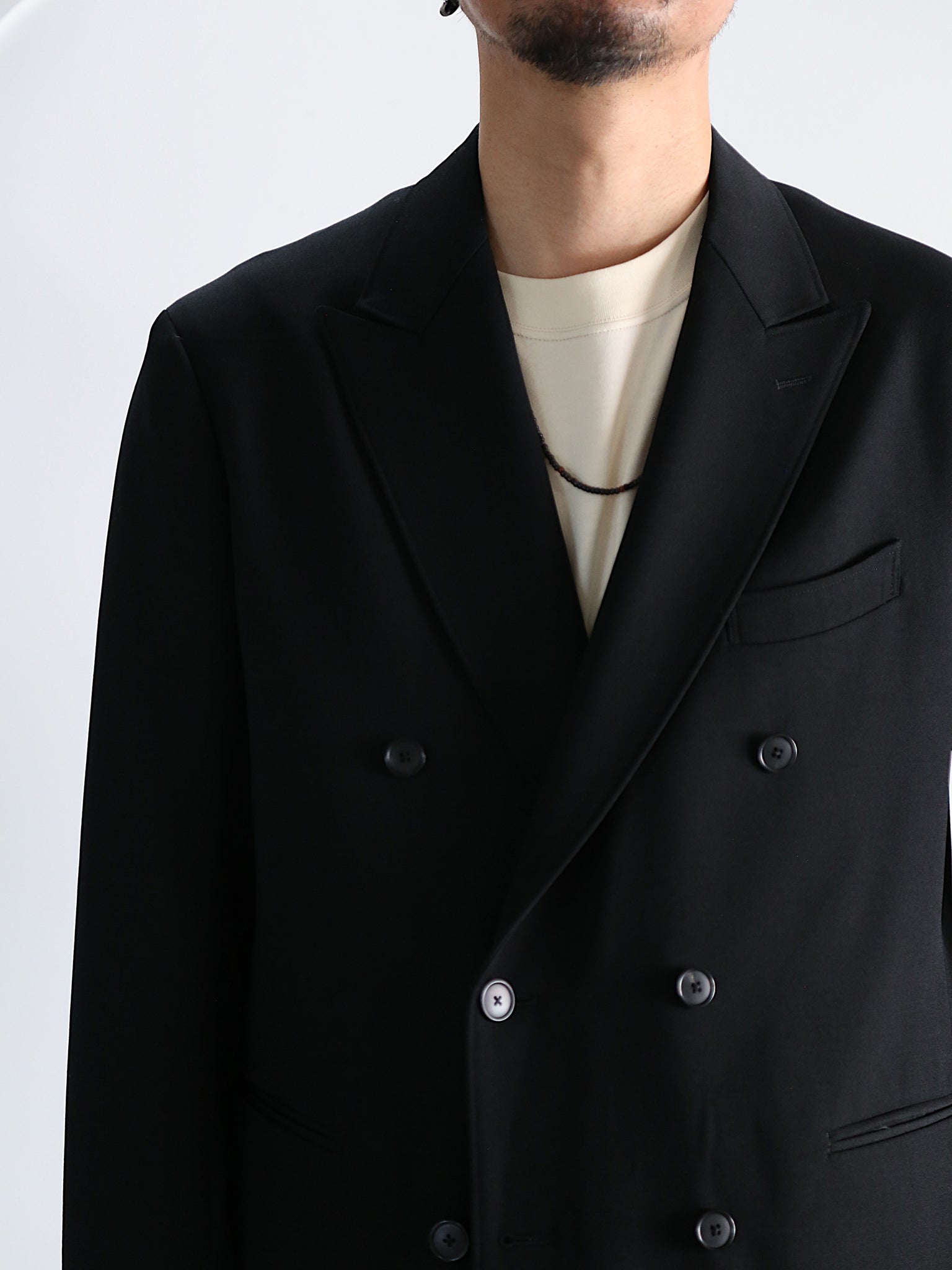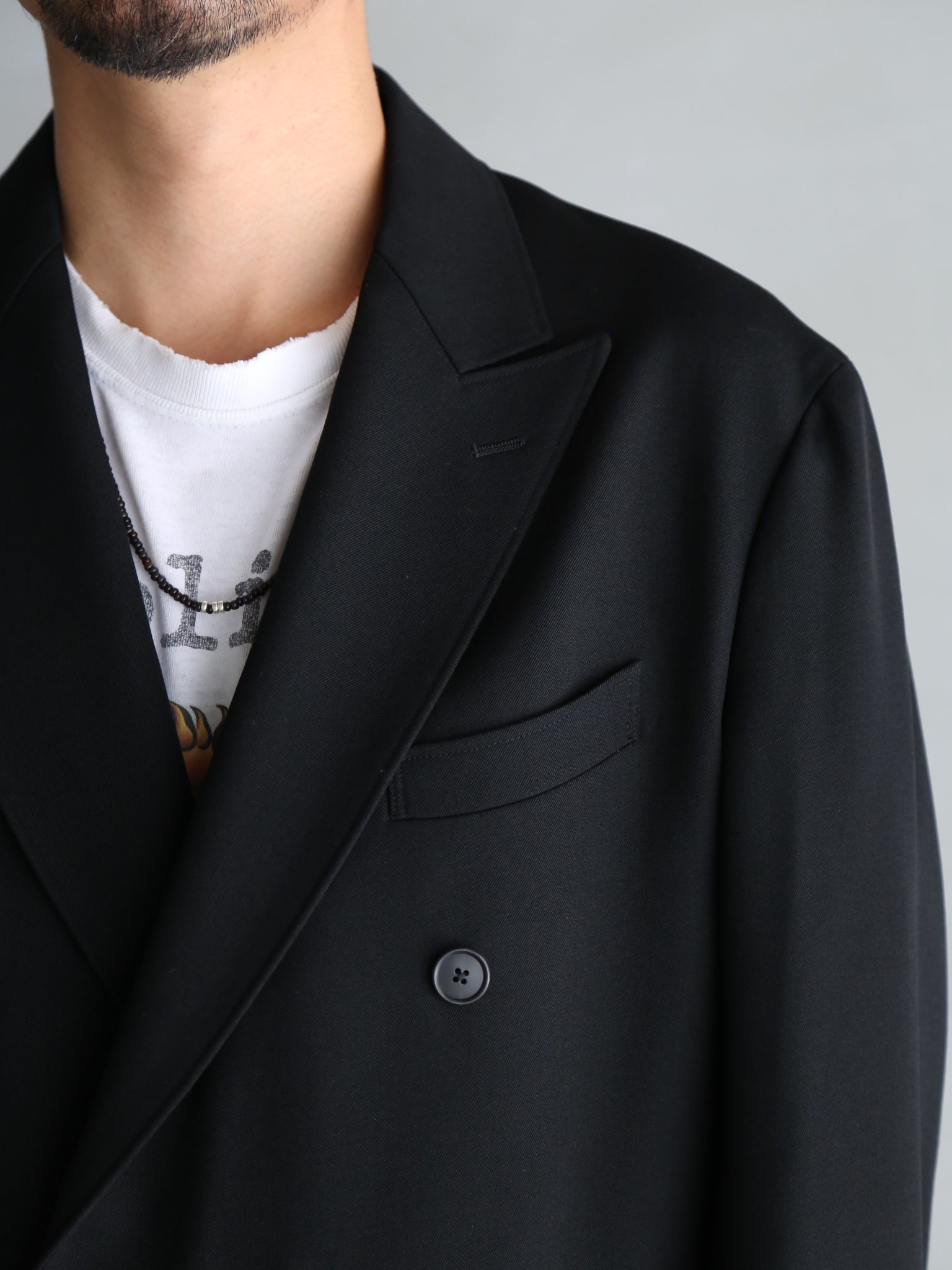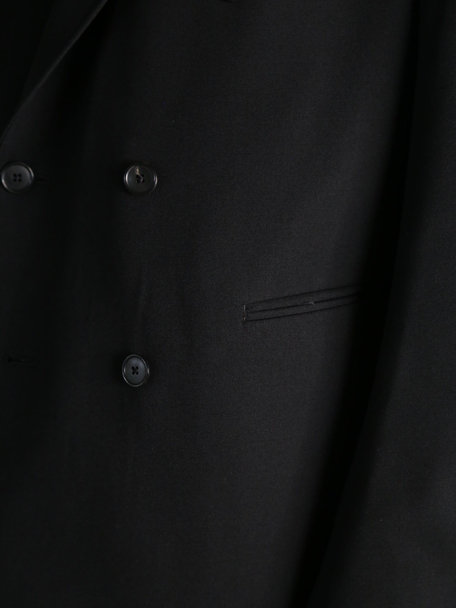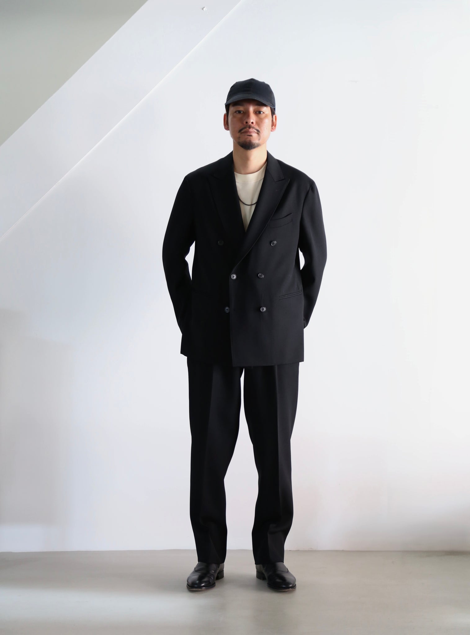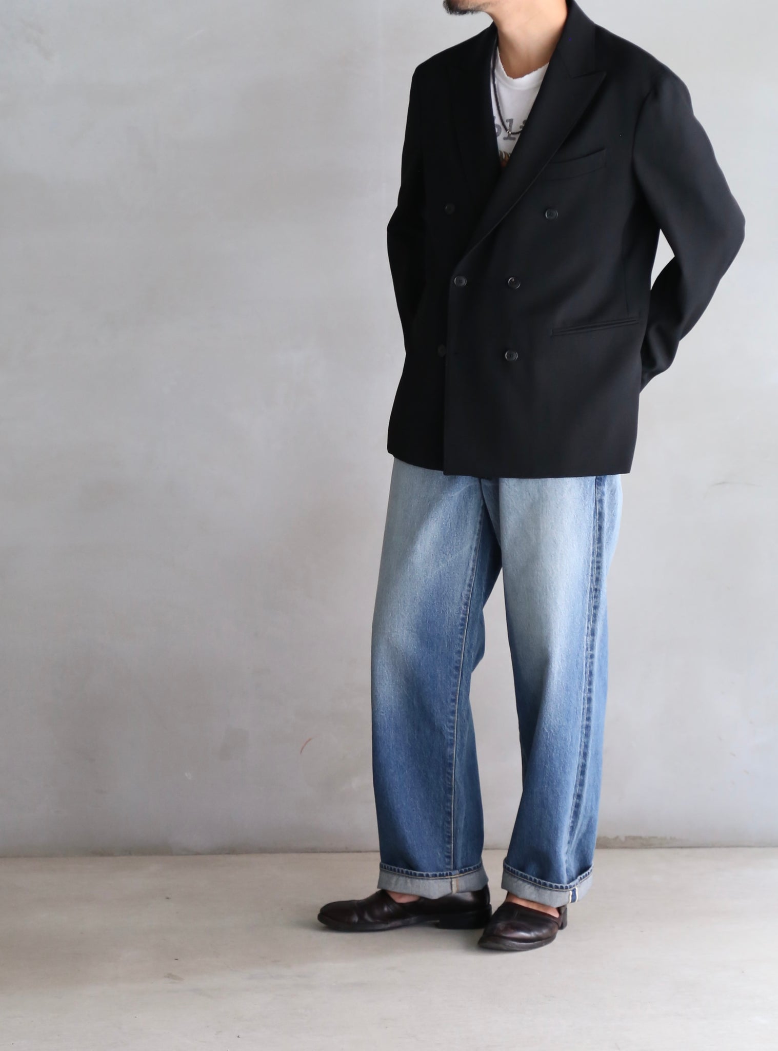 ブランドの定番モデルとして愛される一着。創業150年の歴史を持つ尾州の老舗機屋に別注した、フォーマル由来の伝統的なギャバジン生地を使用しています。1940年代のワークジャケットをベースに、クラシカルな趣を残しつつも、現代的な感覚で仕立てたダブルブレステッド。ヴィンテージの風格とモダンな洗練さを兼ね備え、幅広いスタイルに自然に馴染む万能な一着です。