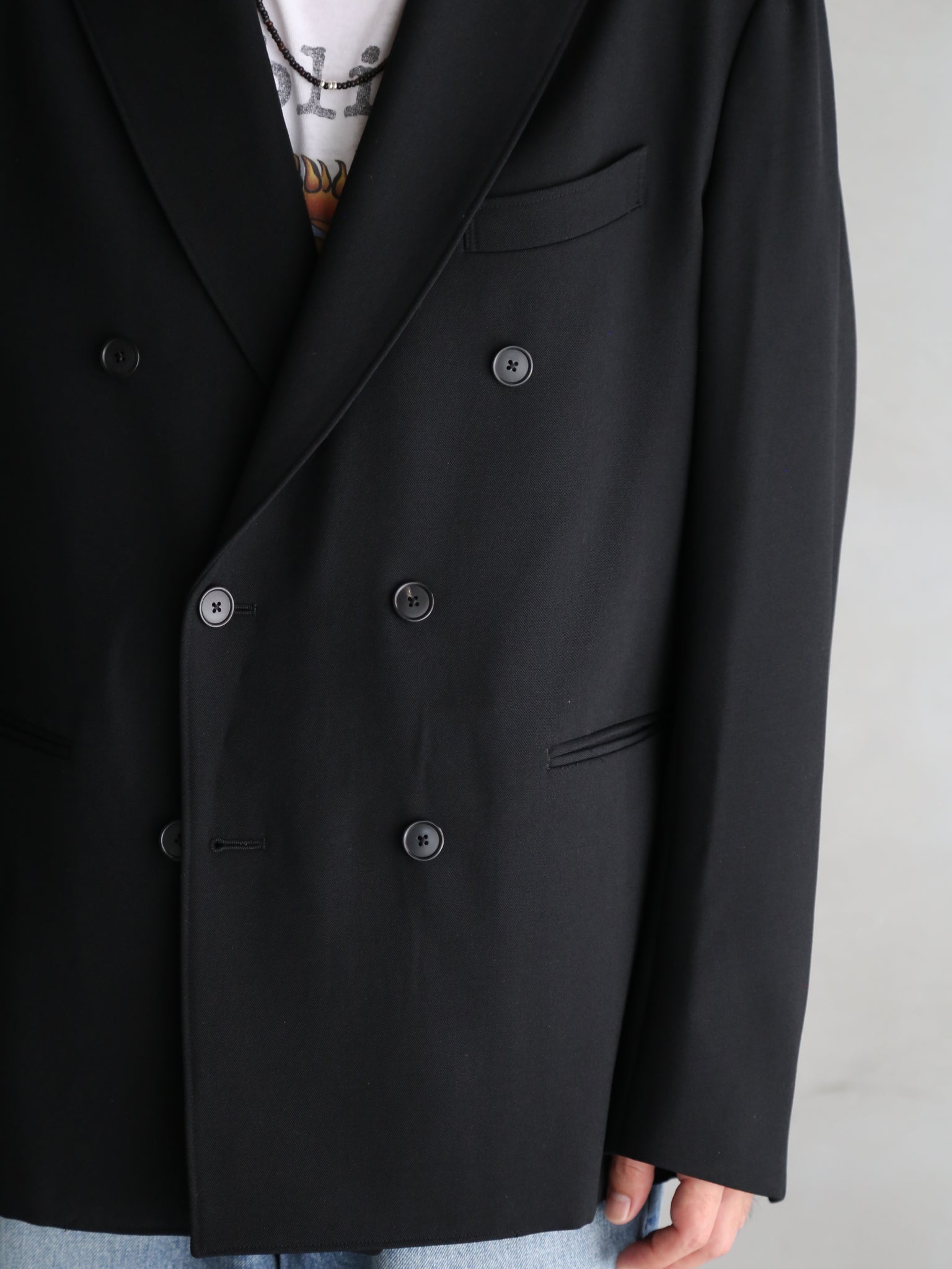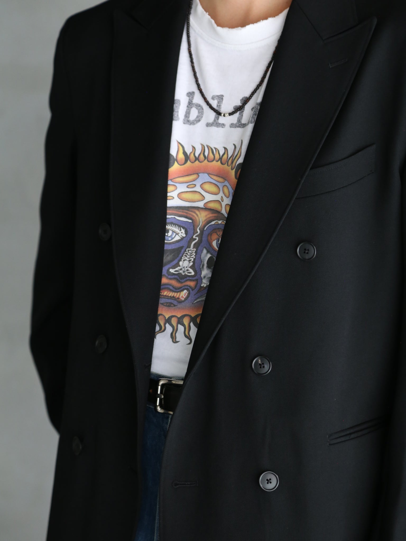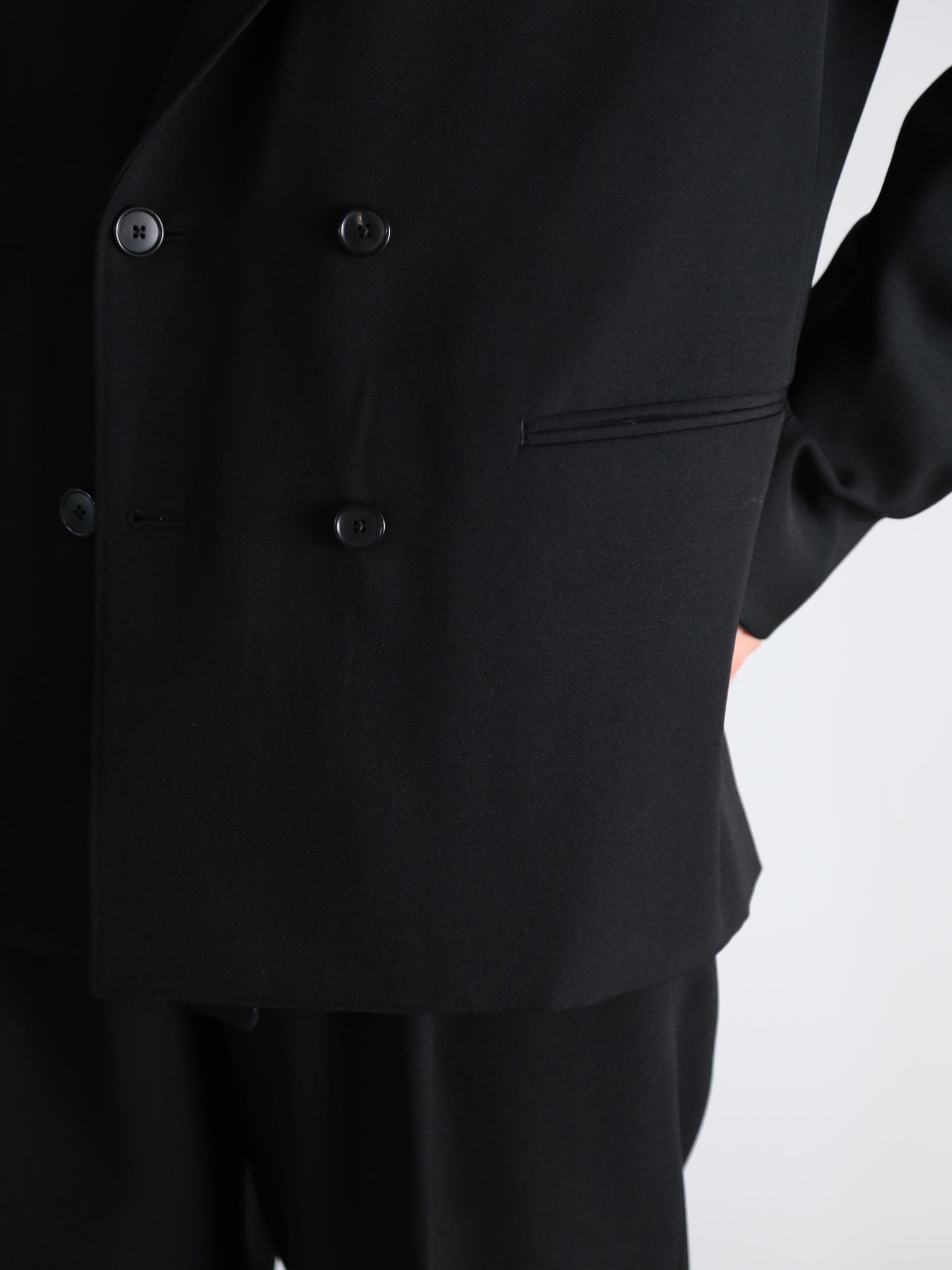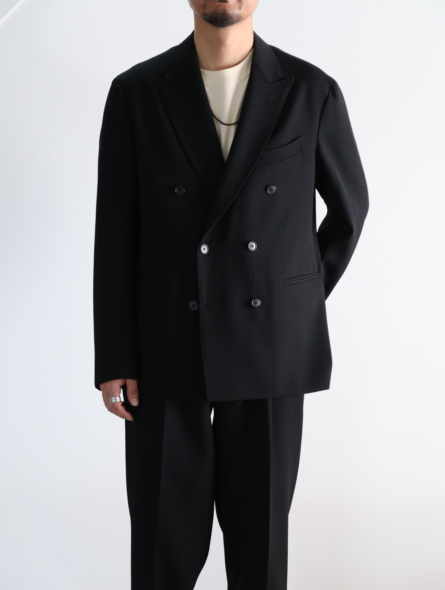 ブランドの定番モデルとして愛される一着。創業150年の歴史を持つ尾州の老舗機屋に別注した、フォーマル由来の伝統的なギャバジン生地を使用しています。1940年代のワークジャケットをベースに、クラシカルな趣を残しつつも、現代的な感覚で仕立てたダブルブレステッド。ヴィンテージの風格とモダンな洗練さを兼ね備え、幅広いスタイルに自然に馴染む万能な一着です。