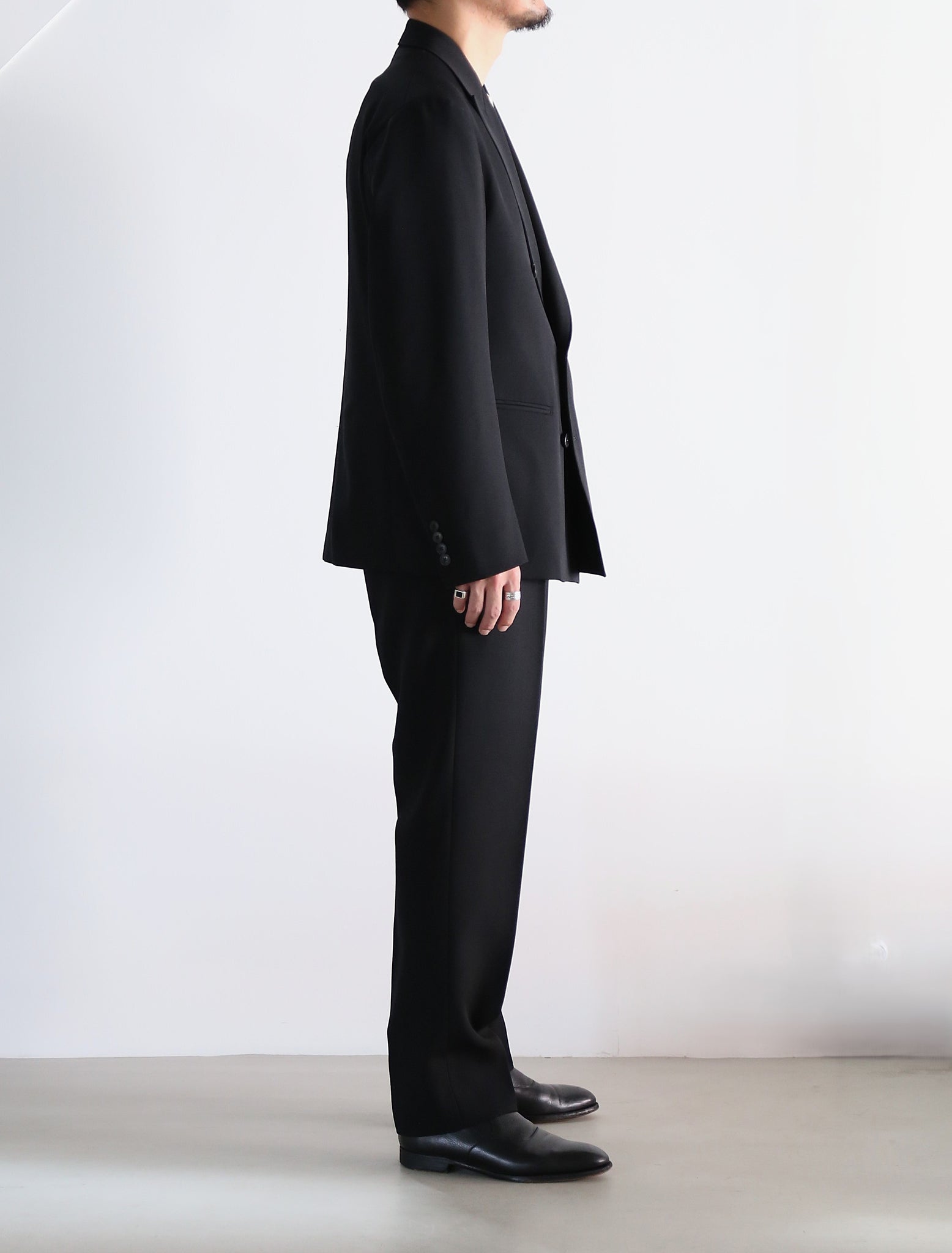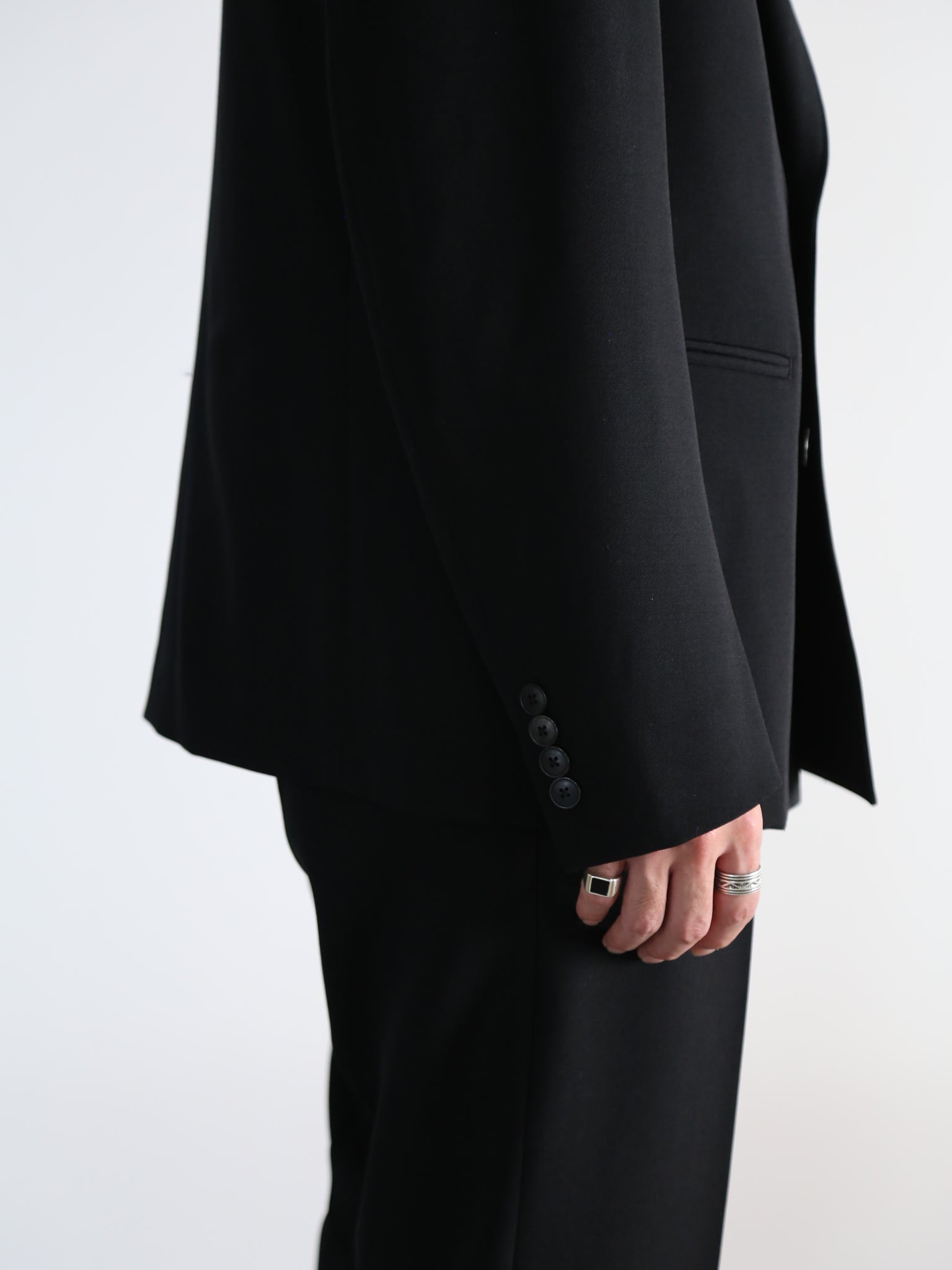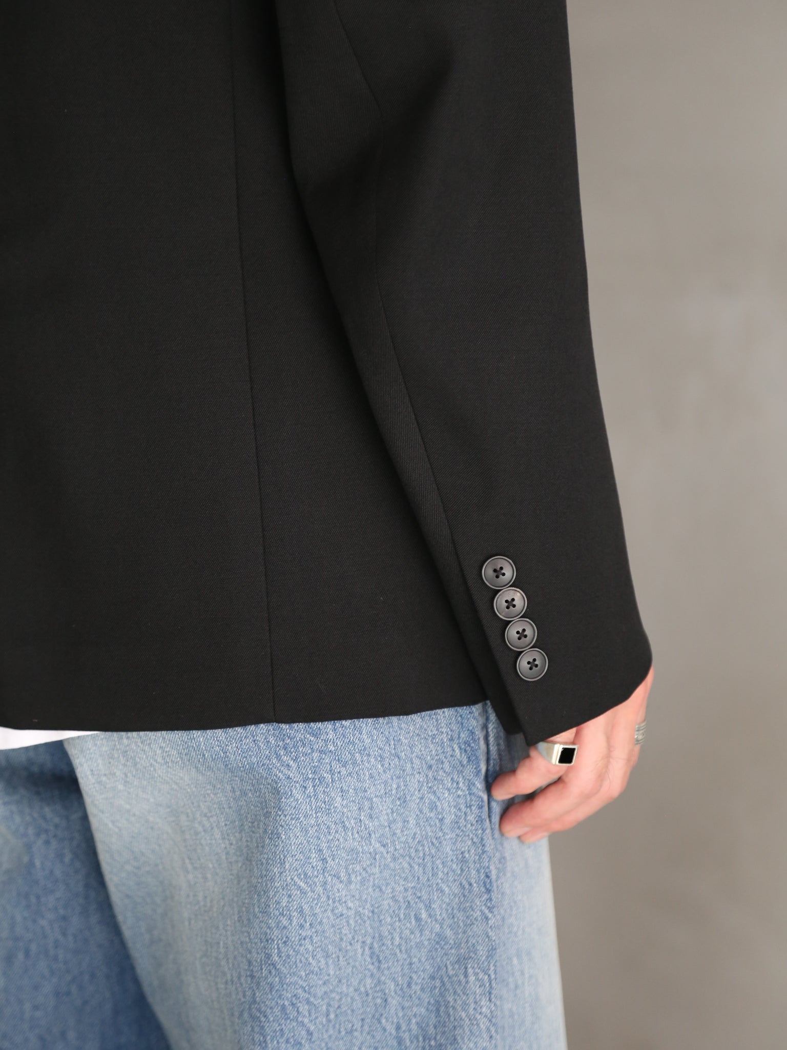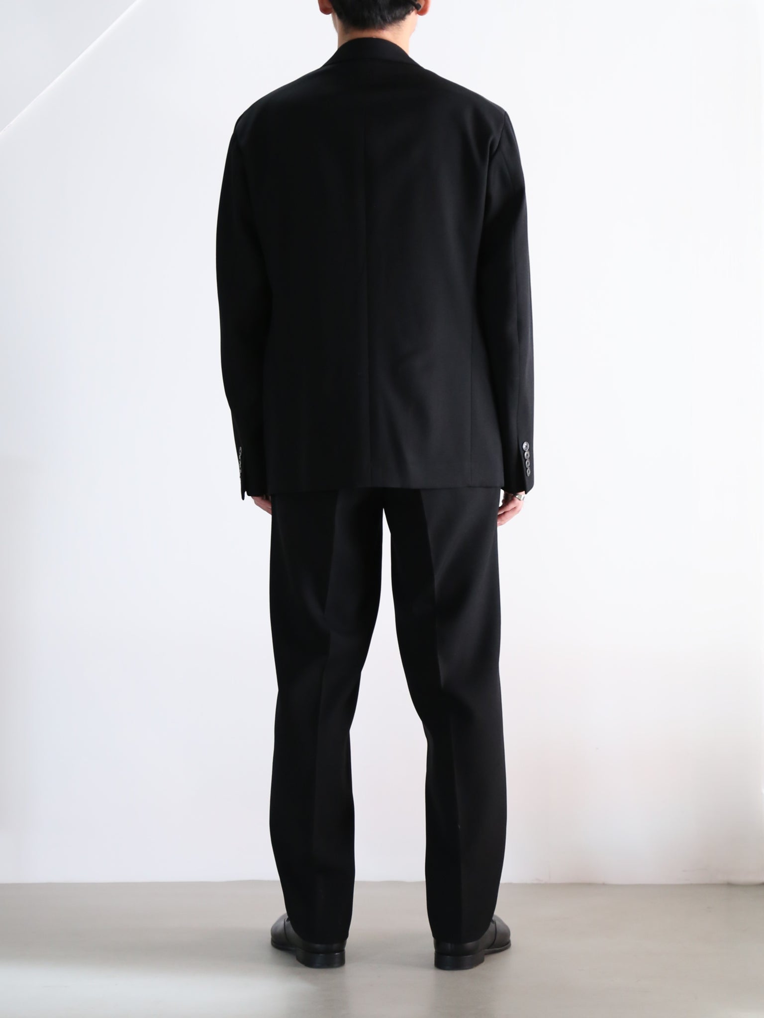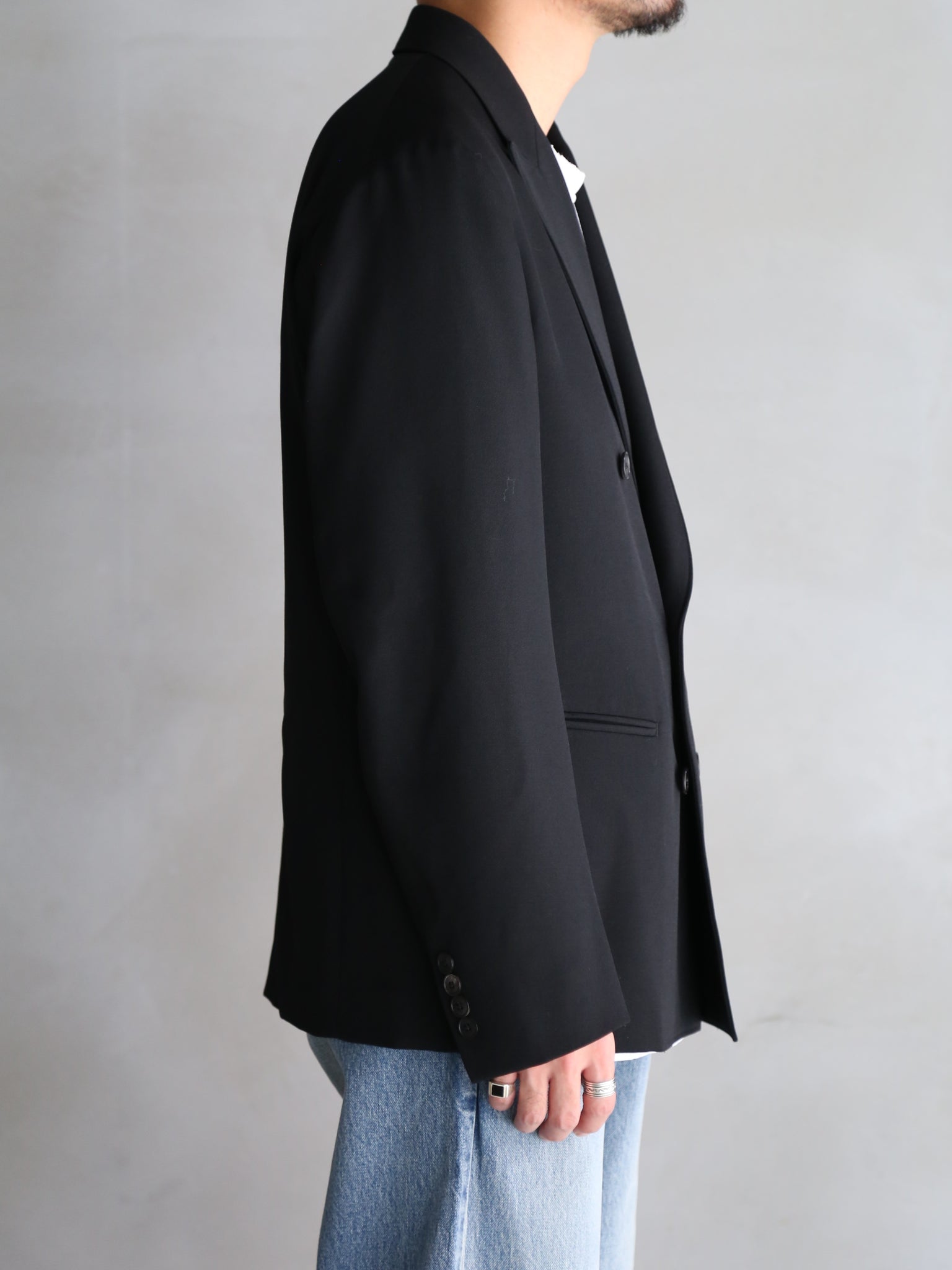ブランドの定番モデルとして愛される一着。創業150年の歴史を持つ尾州の老舗機屋に別注した、フォーマル由来の伝統的なギャバジン生地を使用しています。1940年代のワークジャケットをベースに、クラシカルな趣を残しつつも、現代的な感覚で仕立てたダブルブレステッド。ヴィンテージの風格とモダンな洗練さを兼ね備え、幅広いスタイルに自然に馴染む万能な一着です。
