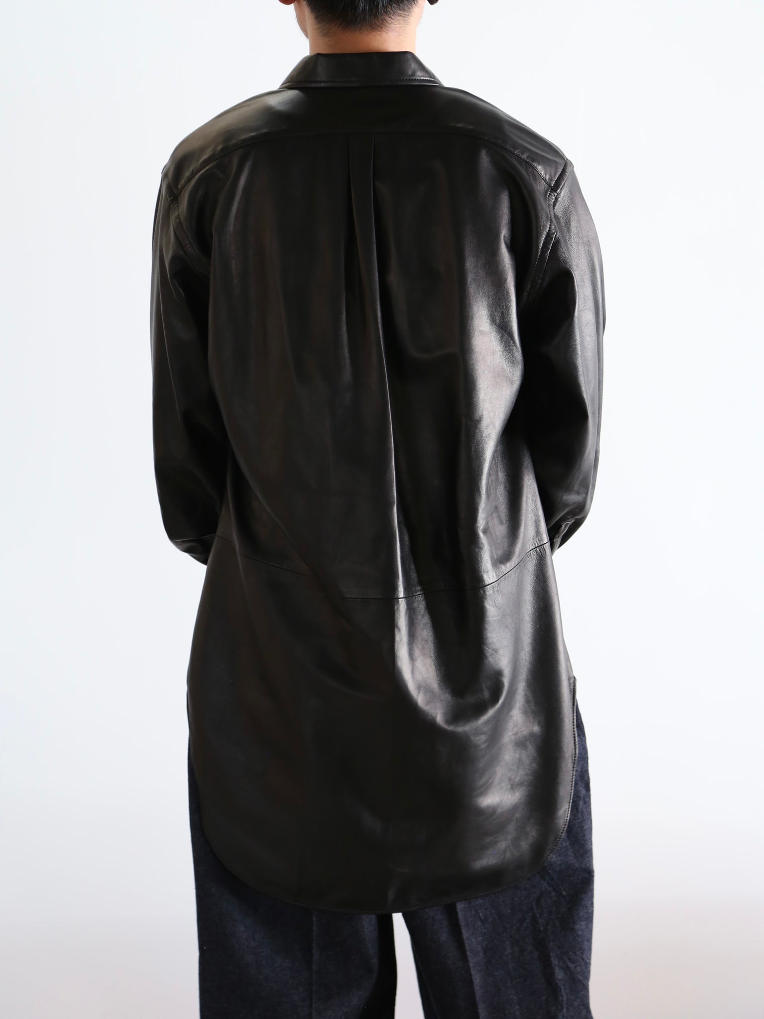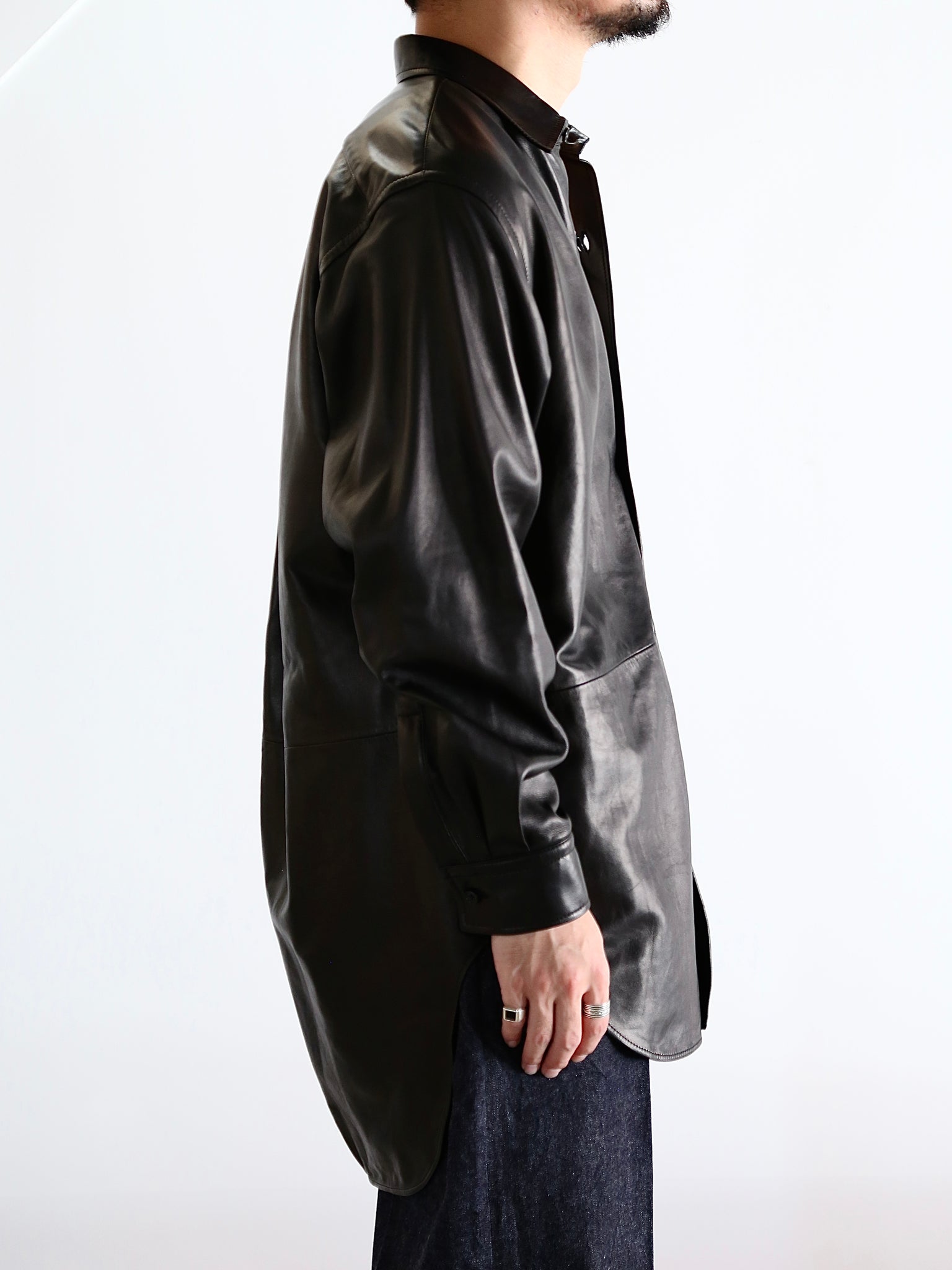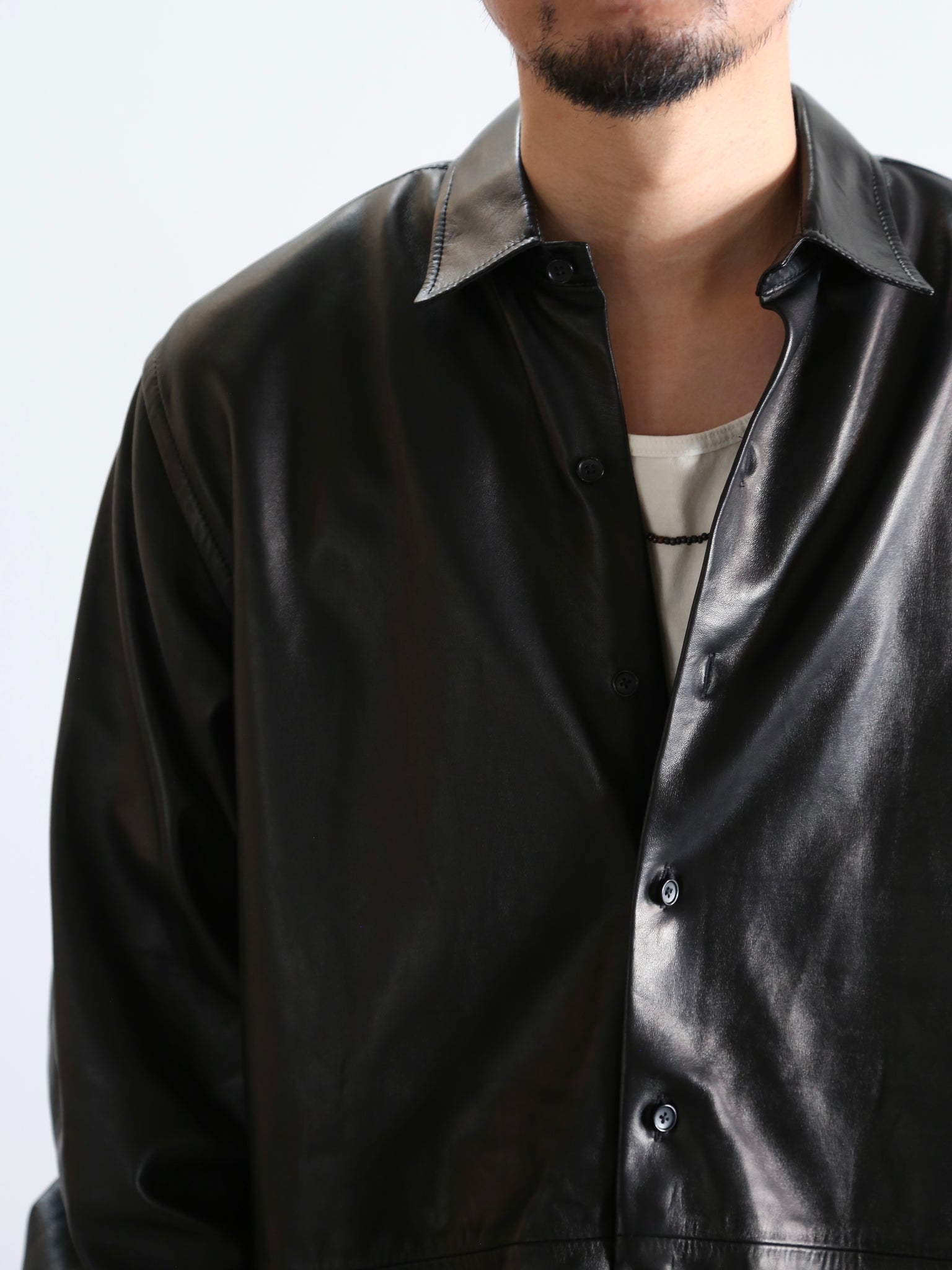 極上のラムスキンを使用し、60年代のオフィサーシャツをモチーフに定番のALAN型で仕立てた一着。しなやかで肌馴染みの良い質感と、上質さを感じさせる表情が魅力です。
