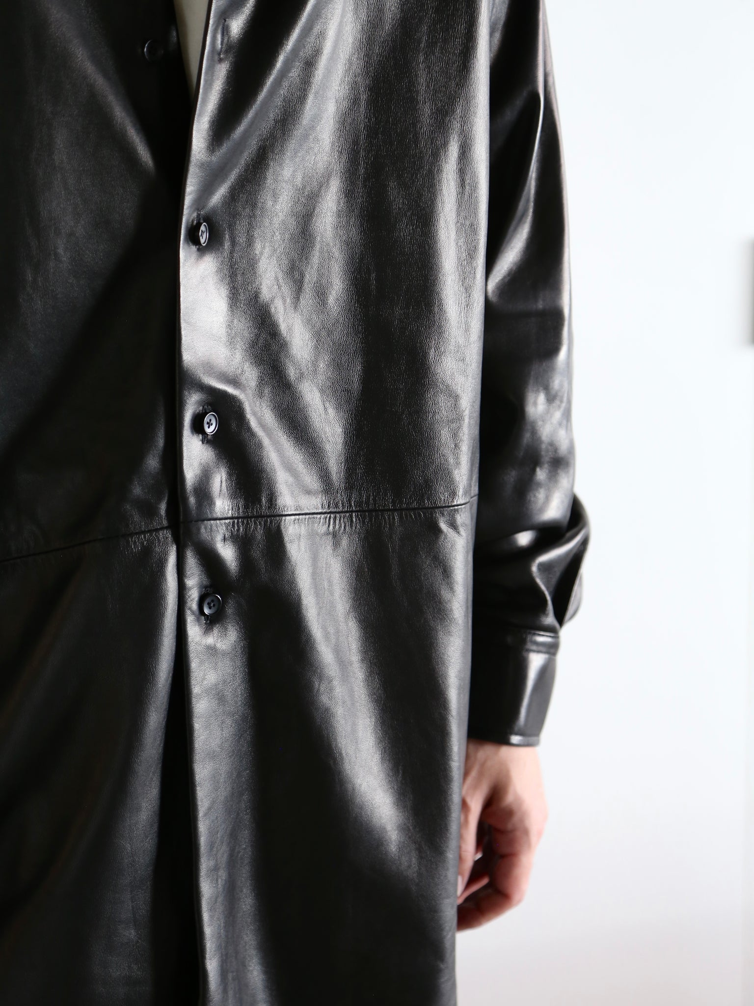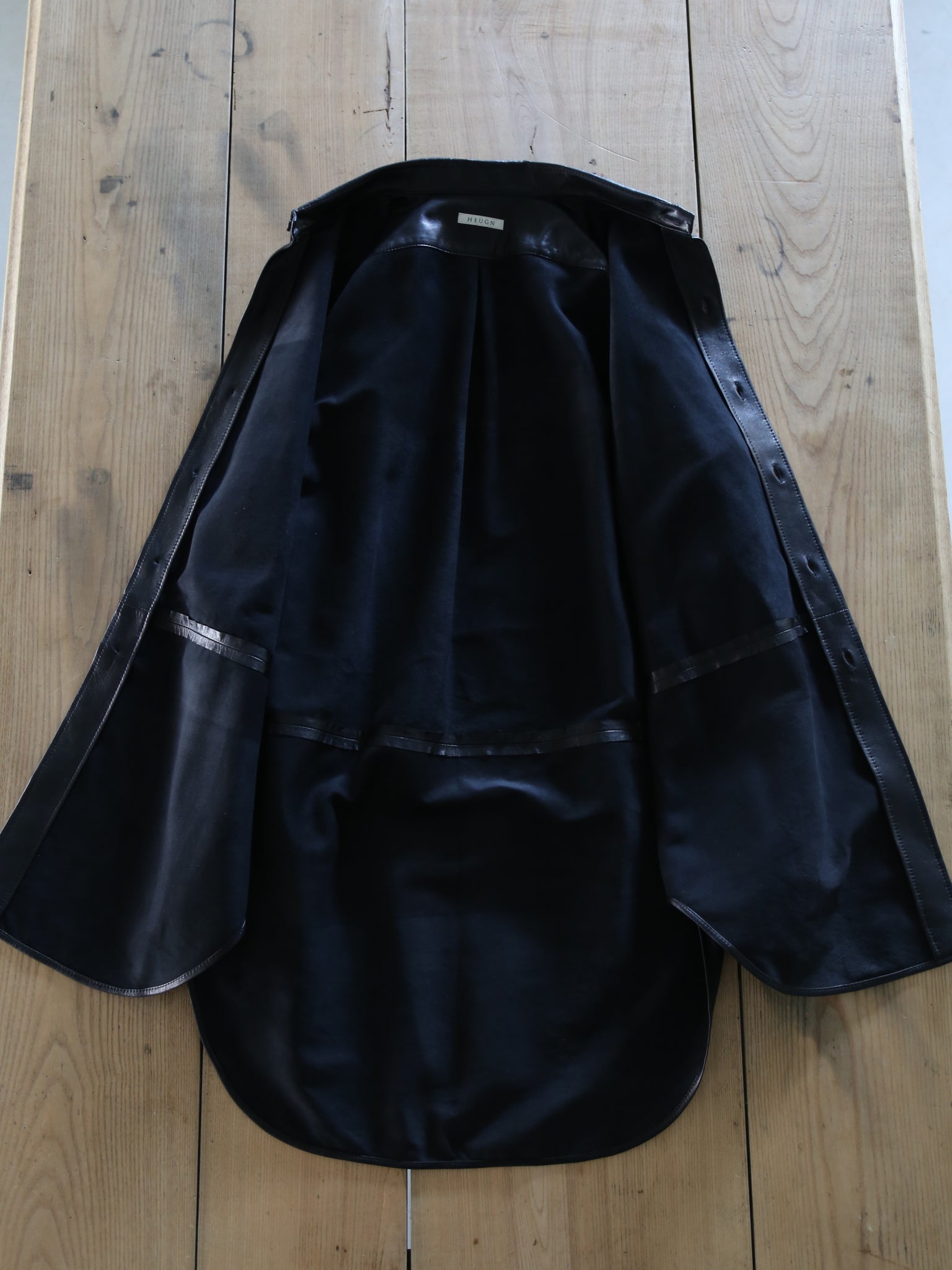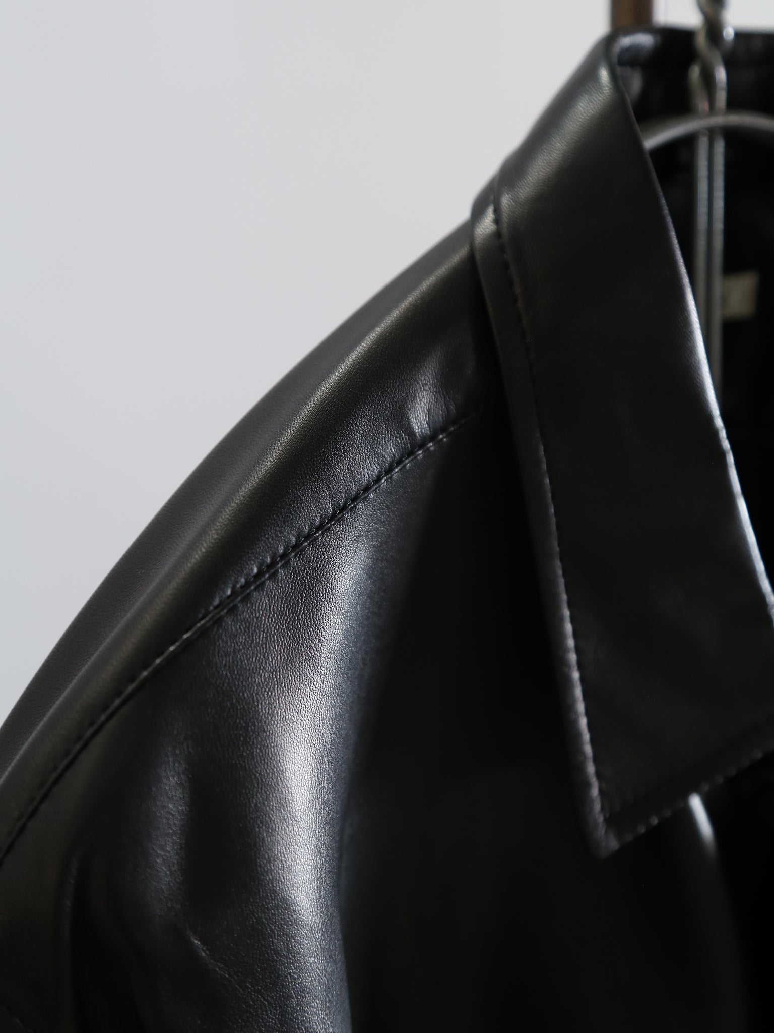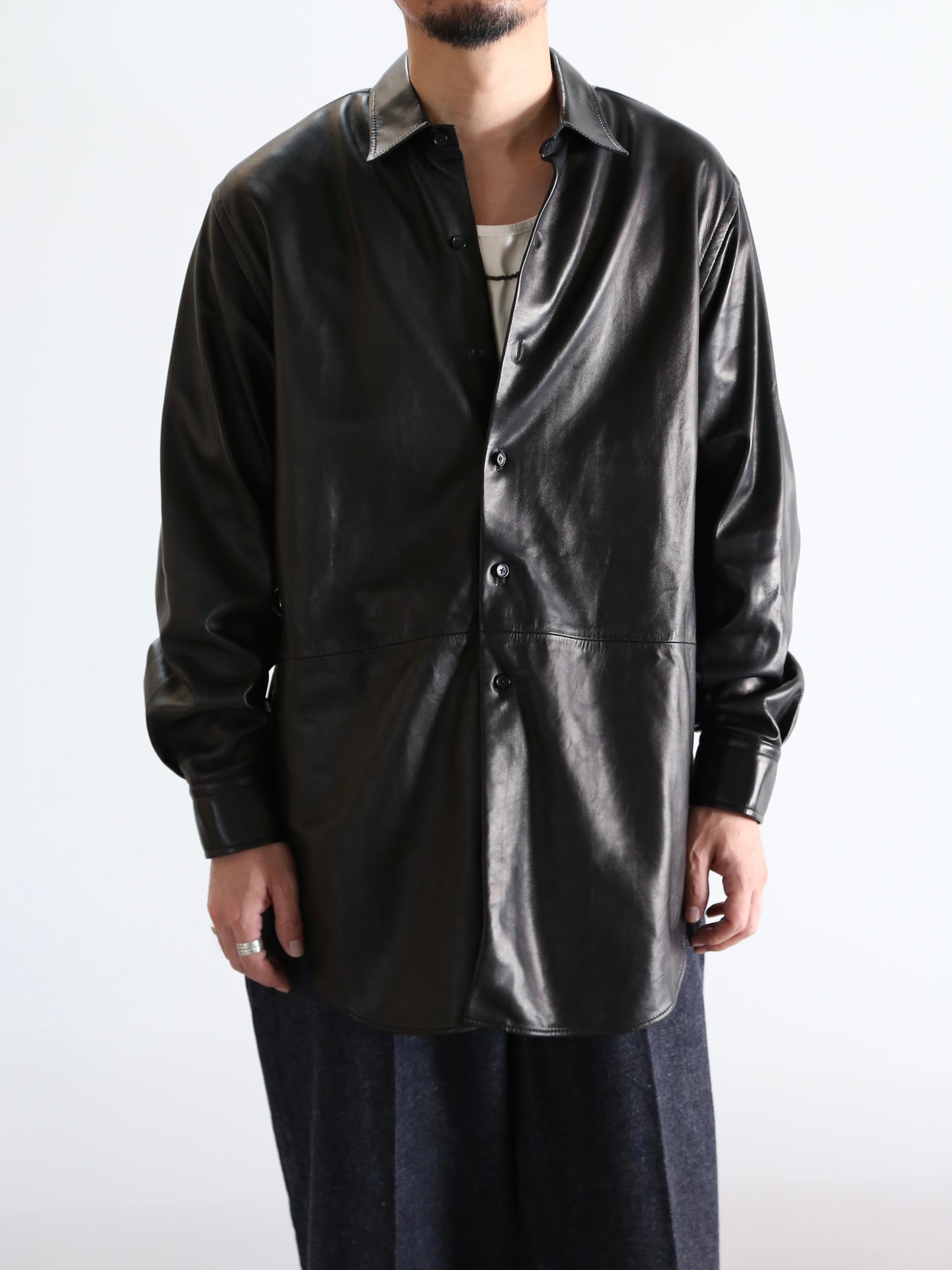 極上のラムスキンを使用し、60年代のオフィサーシャツをモチーフに定番のALAN型で仕立てた一着。しなやかで肌馴染みの良い質感と、上質さを感じさせる表情が魅力です。