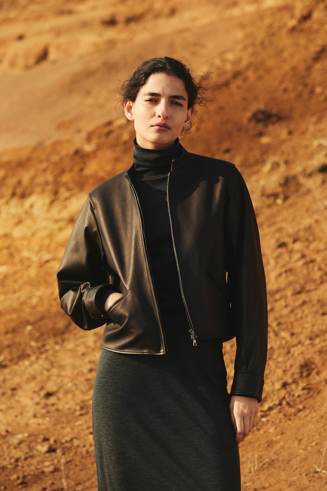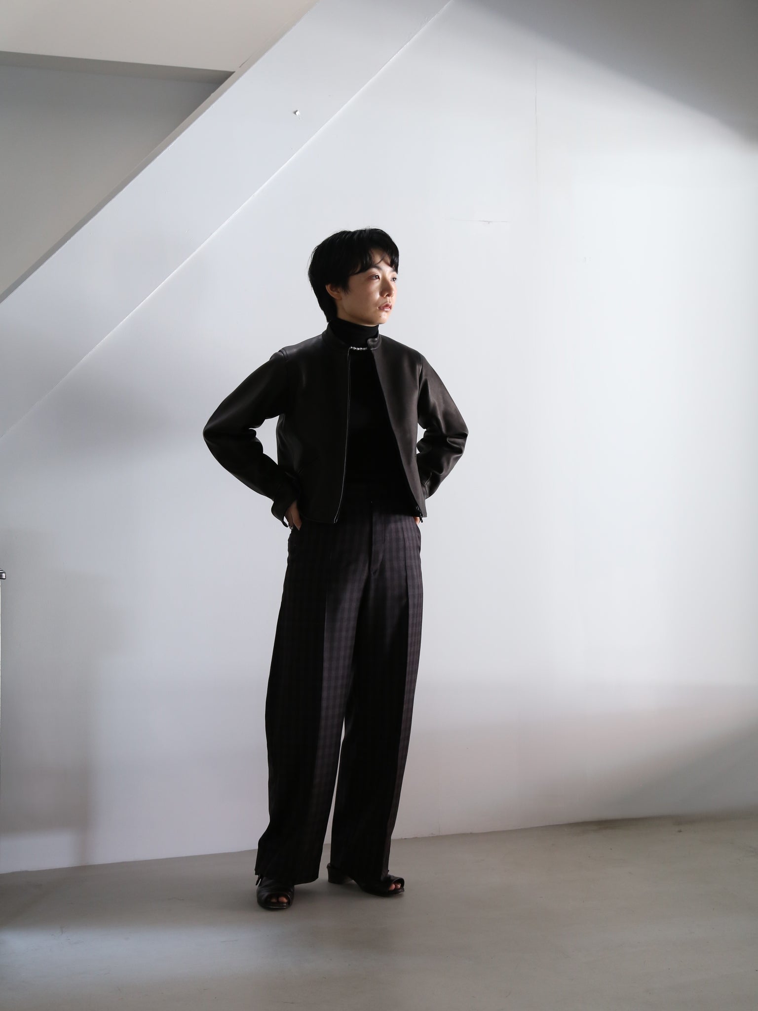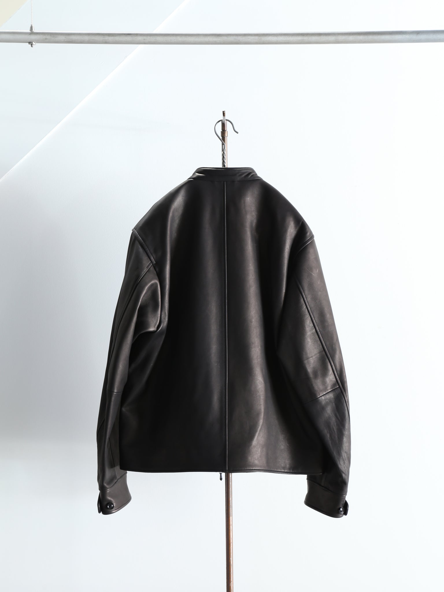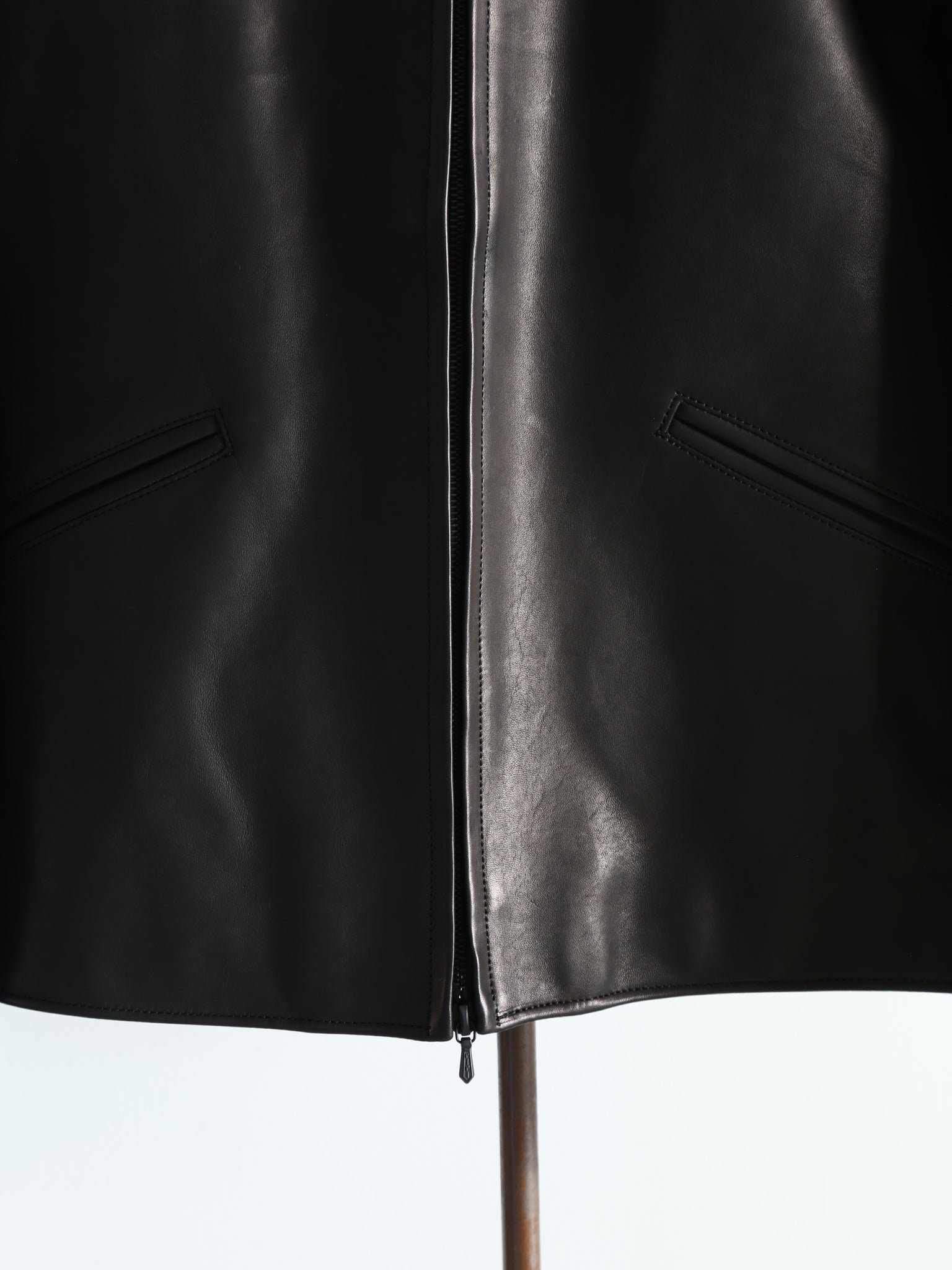 過剰な装飾を排し、ミニマルなデザインで仕立てたフロントジップレザージャケット。素材は、スペイン産ラムレザー。しなやかで肌に吸い付くような質感を持ち、光沢を抑えた素上げ仕上げによって、革本来の美しさを最大限に引き出しています。※素材の特性上、ひっかき傷や色落ち、色移りが発生いたします。