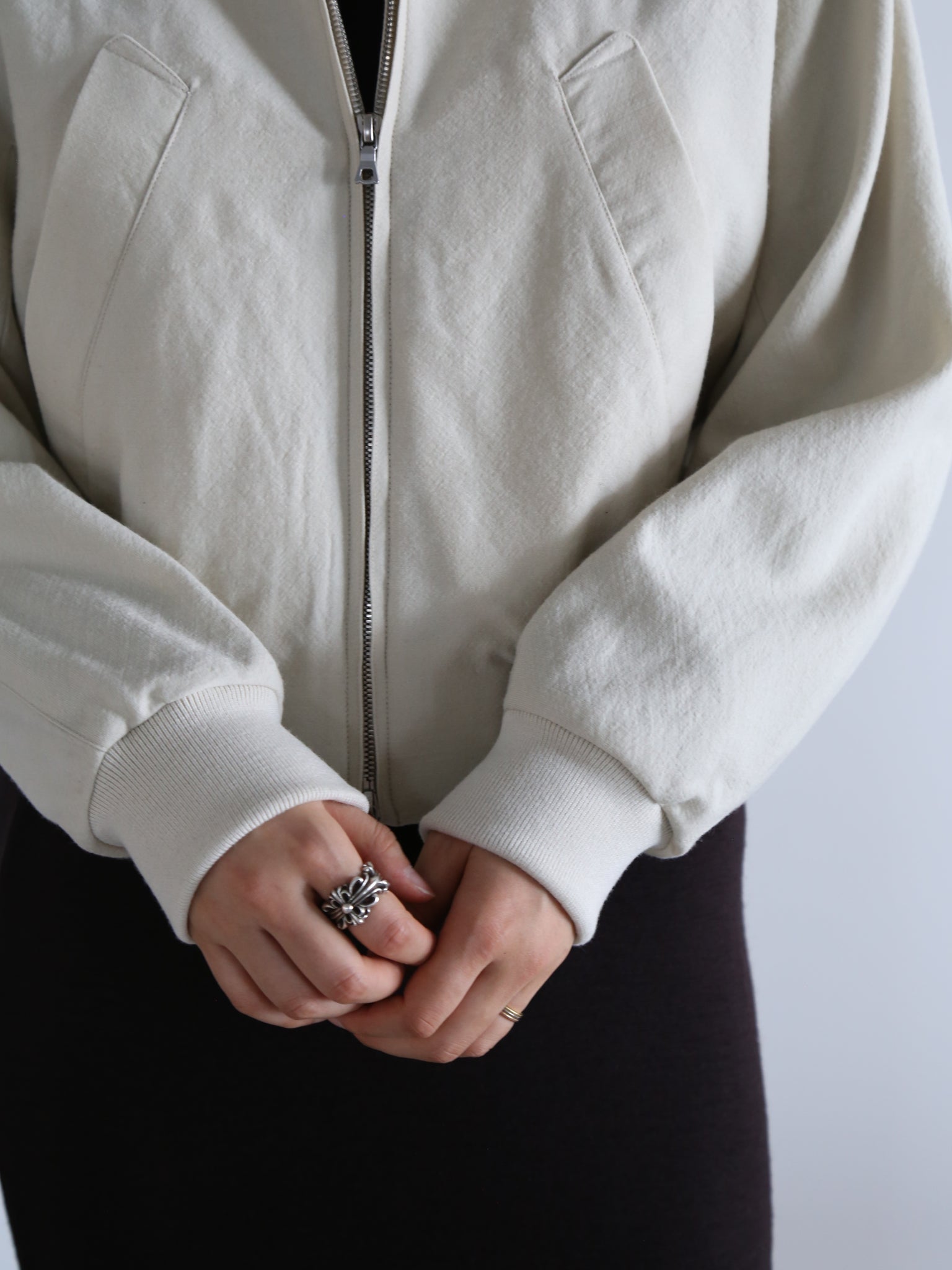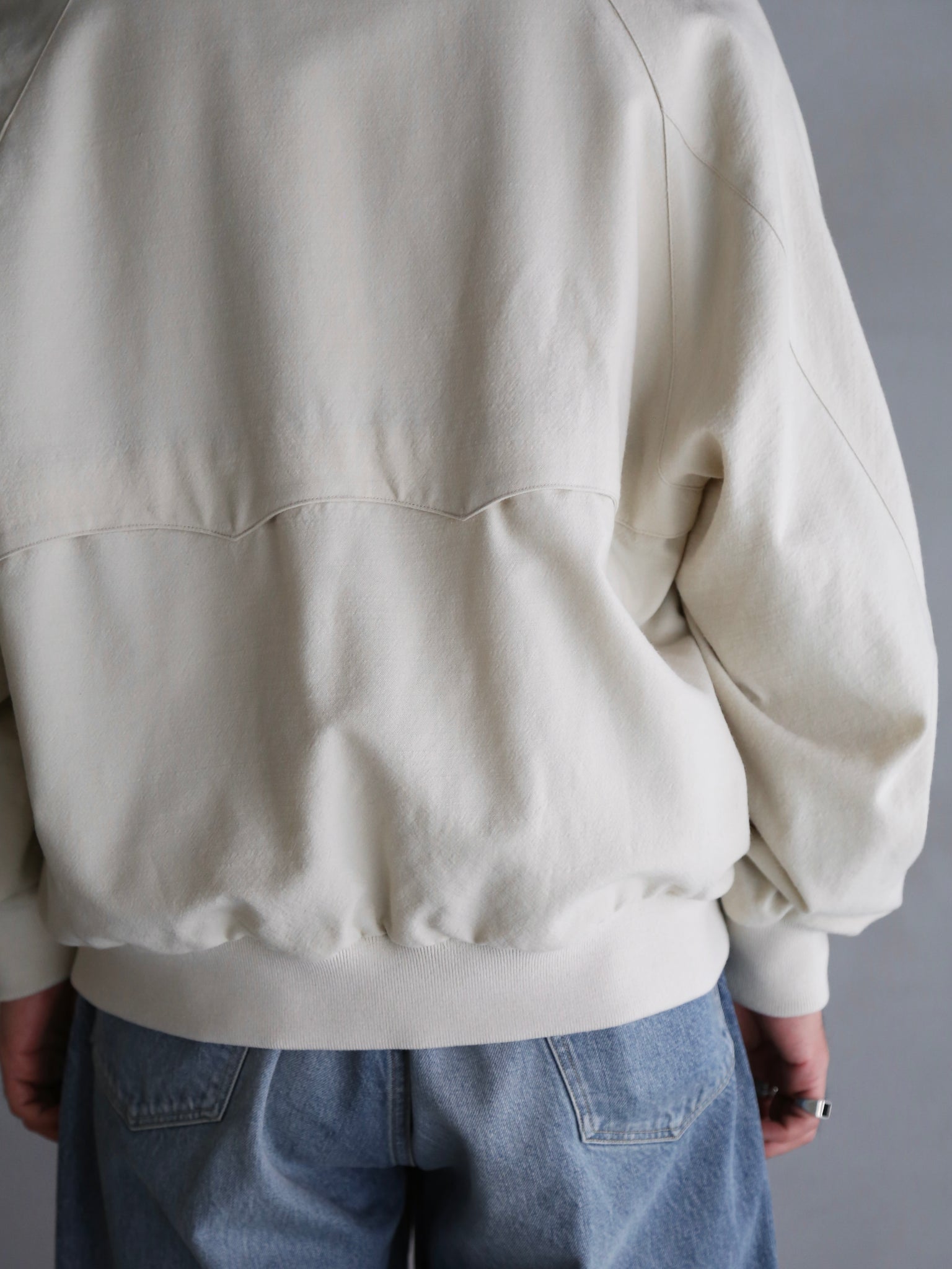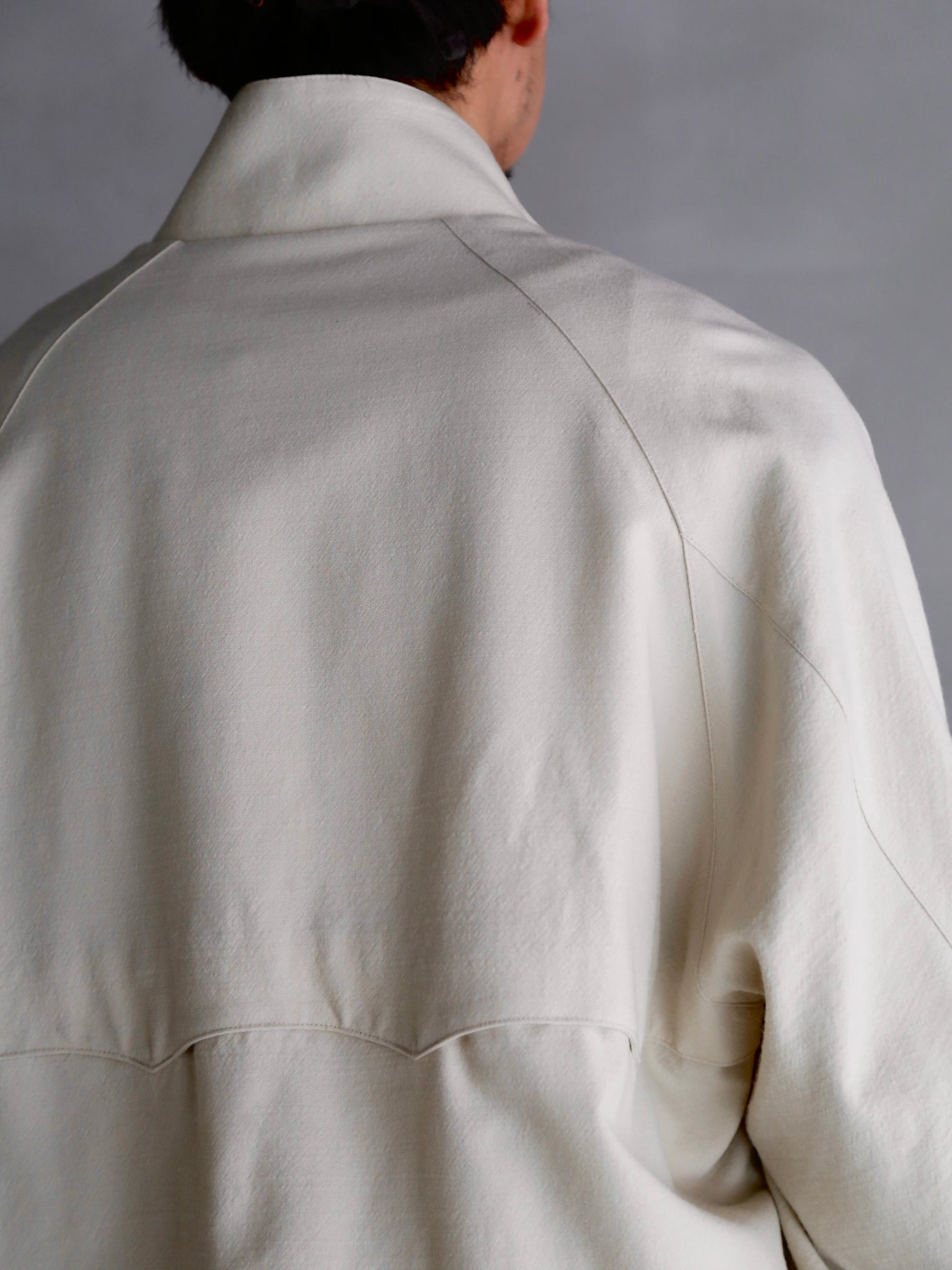 きめ細かく毛羽立たせたウールギャバジンを用いた、ハリントンジャケット。