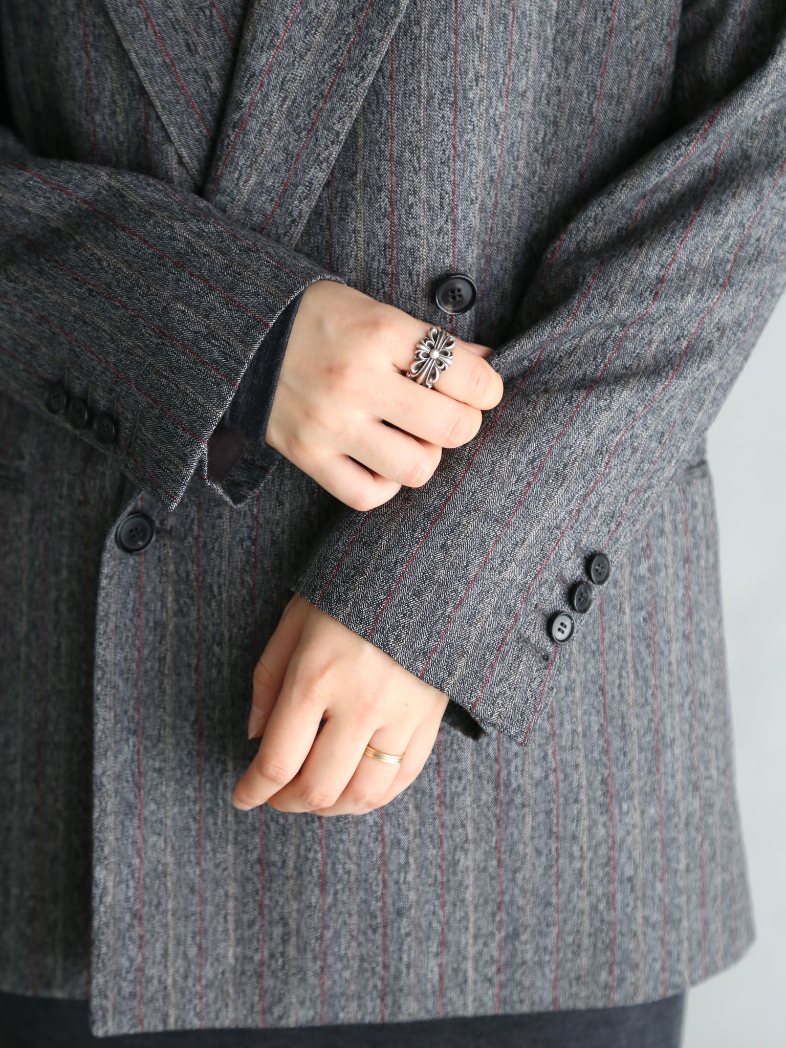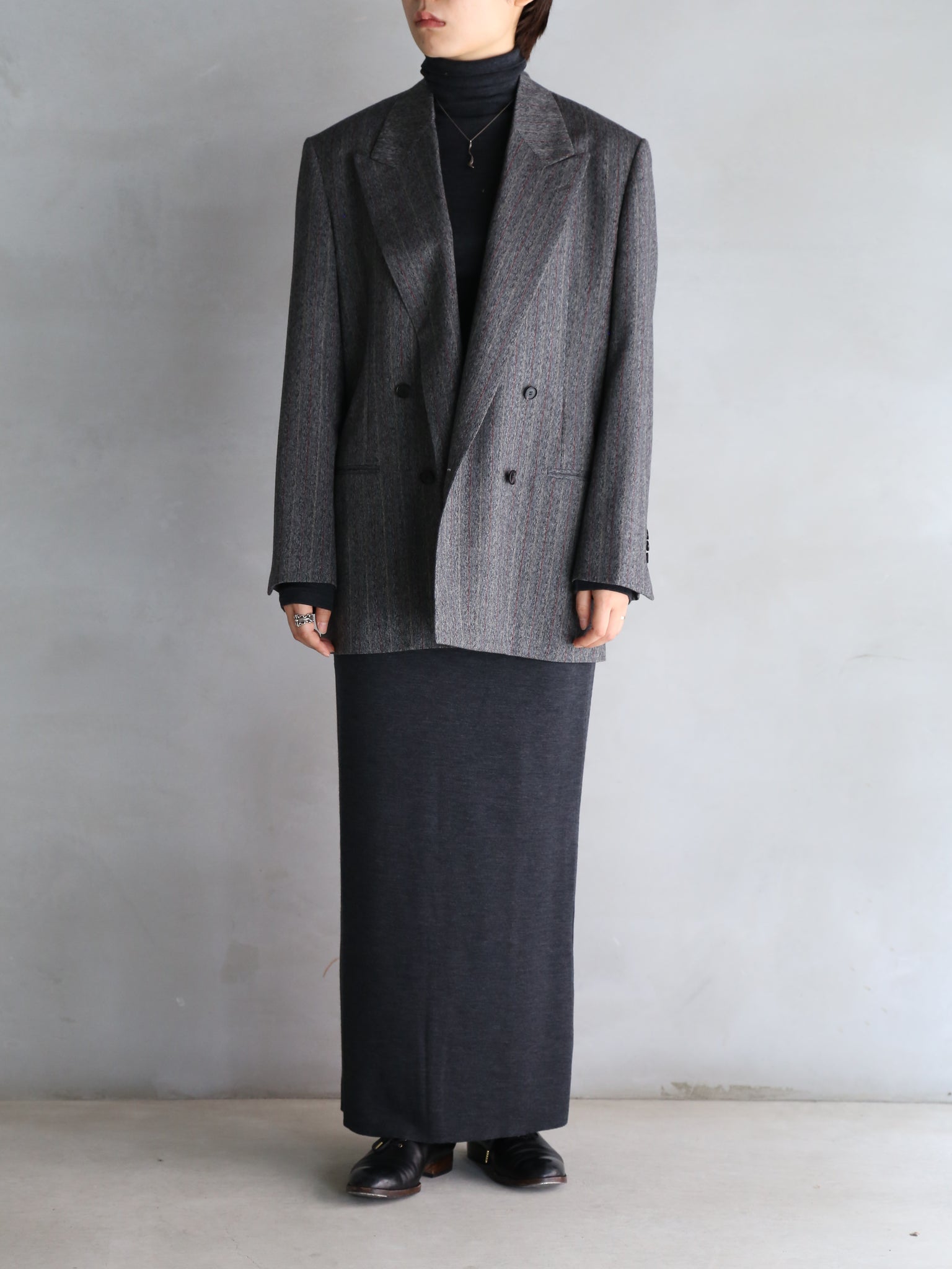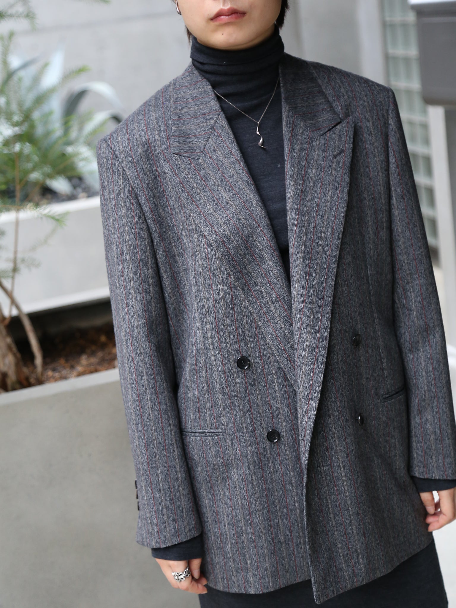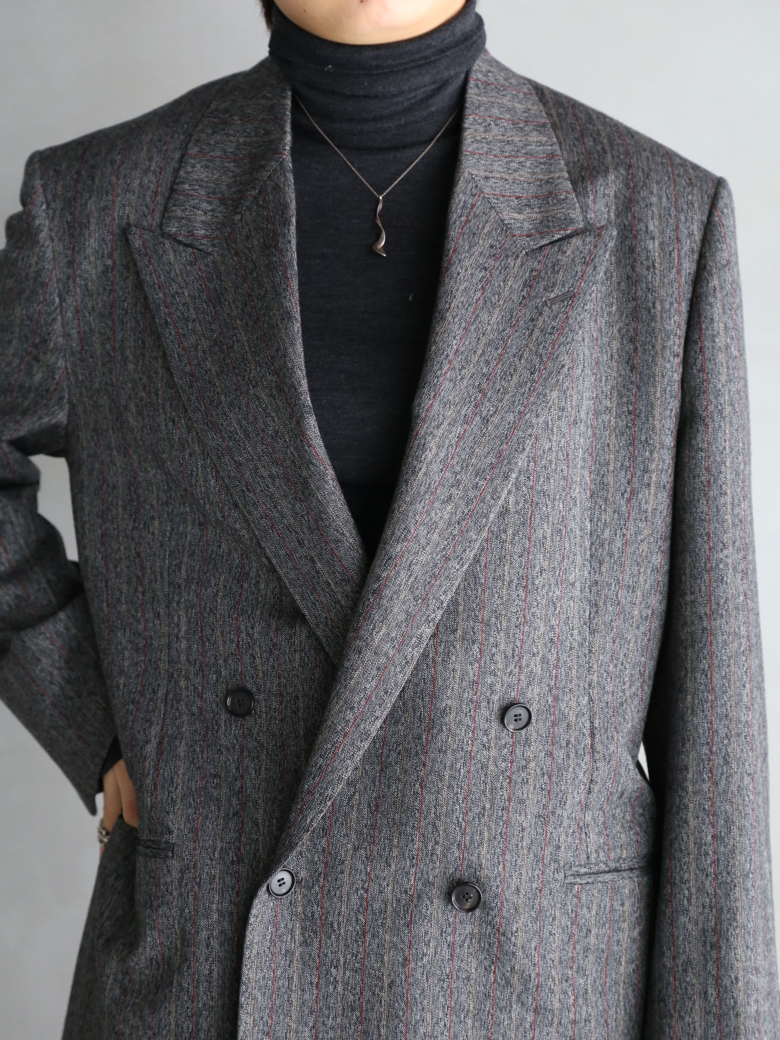【BOWTE】RED PINSTRIPES HERRINGBONE DOUBLE BREASTED TAILOR JK